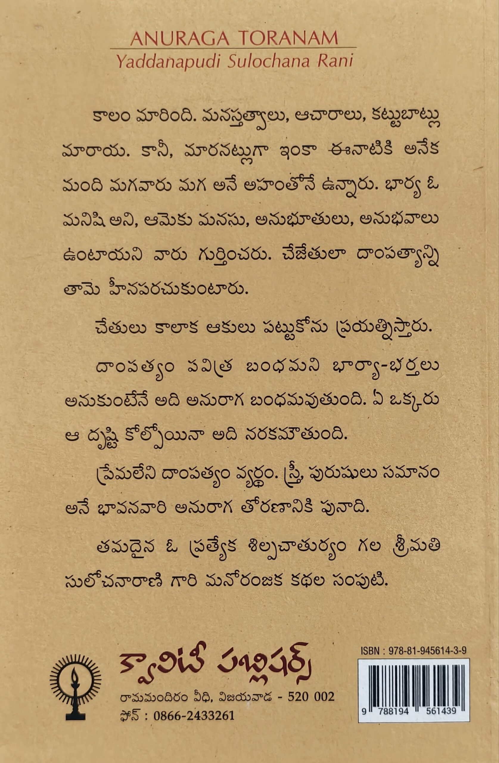 Anuraga Thoranam – అనురాగతోరణం by Yaddanapudi Sulochanaarani
